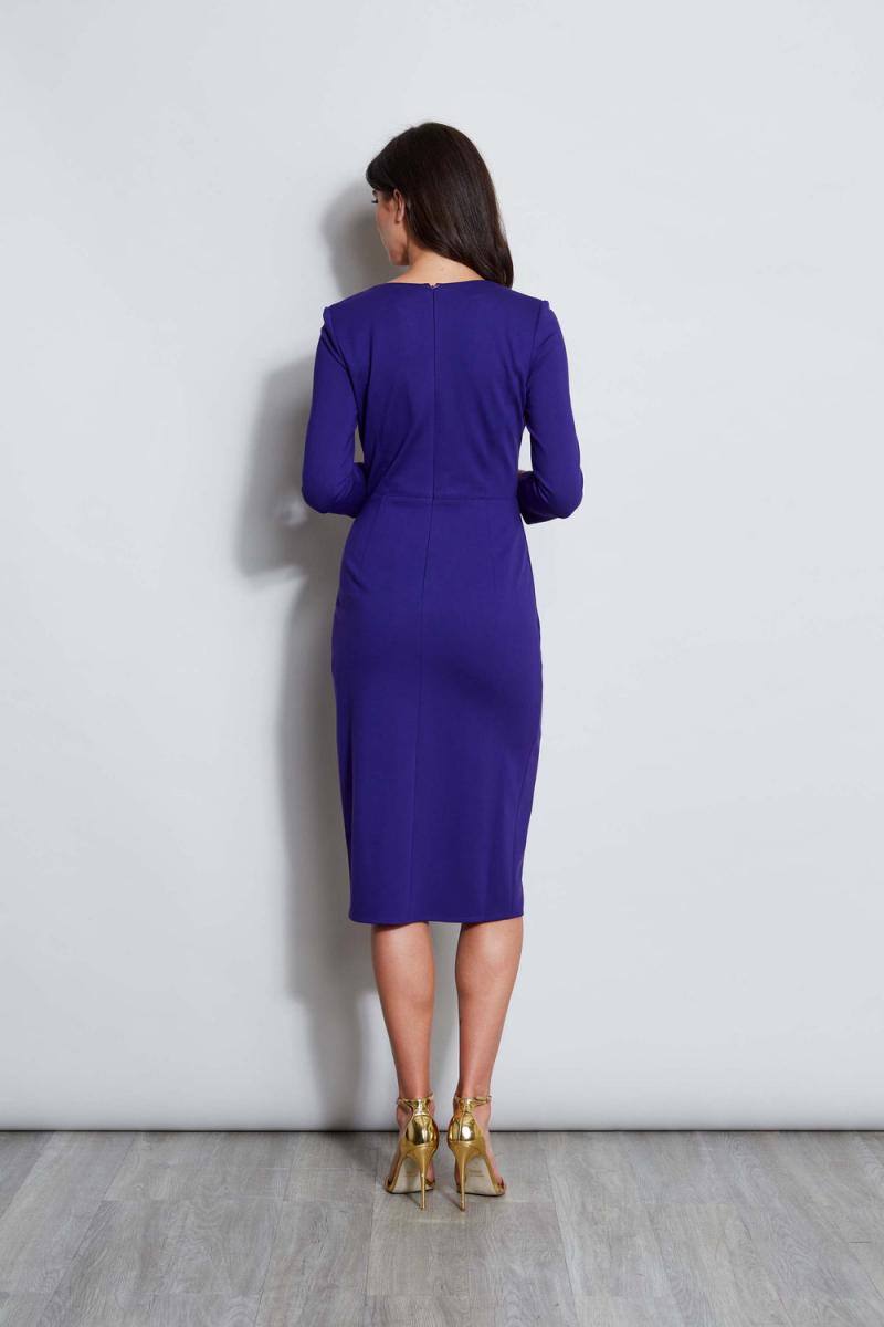 Modern architecture was the inspiration for this sleek body skimming dress. Figure skimming & decidedly cool, the keyhole cut-out showcases a modern Italian sculpted ring and the dress’s faux wrap skirt seaming give it a design edge – whether for day or a night out.Product Details